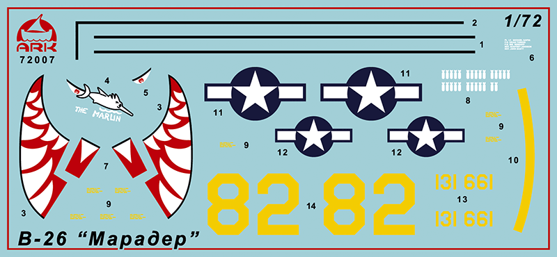 Американский средний бомбардировщик-торпедоносец Мартин В-26 «Мародёр» находился в серийном производстве с осени 1940 года. Самолёты этого типа широко применялись в боях Второй мировой войны, начиная с апреля 1942 года. В годы войны бомбардировщики В-26 также состояли на вооружении ВВС Великобритании, Франции и ЮАС. Всего было изготовлено 5 288 самолётов нескольких модификаций.