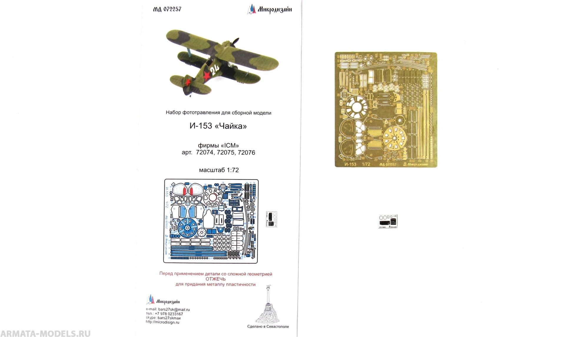 MD 072257 Фототравление для И-153 Микродизайн в Сочи, купить в интернет-магазине, цены, фото