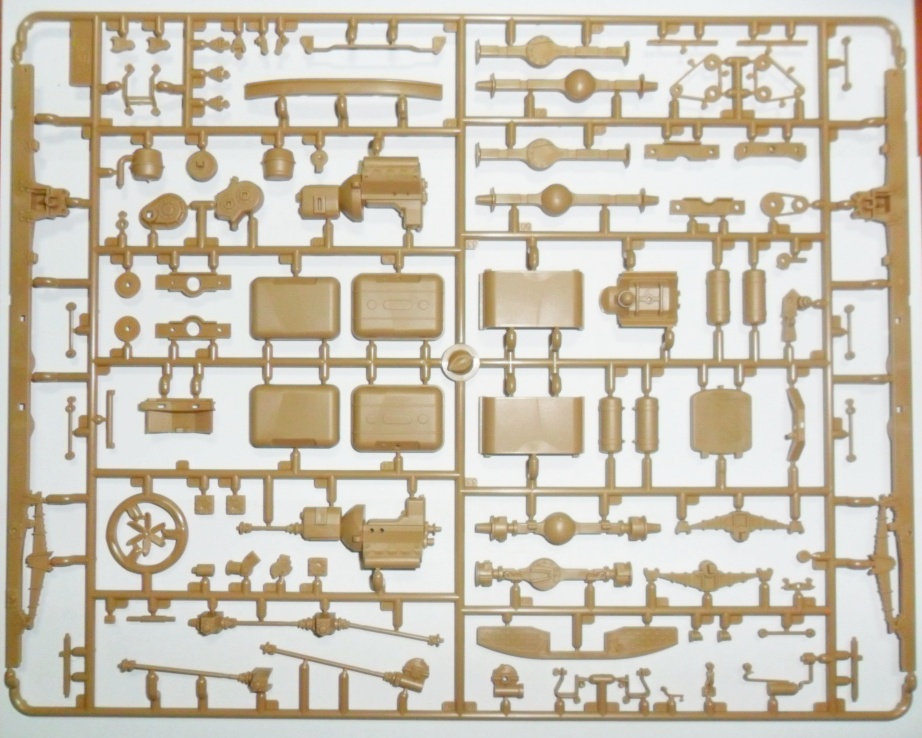 Сборная несущая рама, детально проработанная ходовая часть, раздаточная коробка, карданные валы, мосты, имитацию рессор, глушитель и многое другое.
