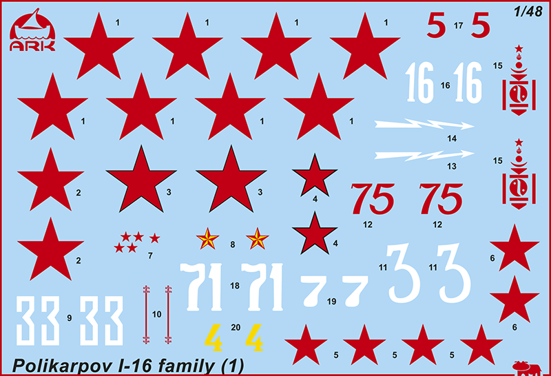 Набор для сборки двух моделей истребителя И-16 в масштабе 1:48 состоит из 152 пластиковых деталей и 47 деталей из смолы (интерьер кабины, хвостовое оперение, шасси, хвостовой костыль, фигуры лётчицы и техника). Прилагаются декали с опознавательными знаками для 8 вариантов самолёта.