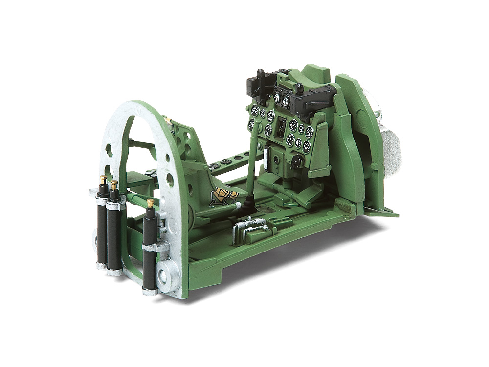 Детализированный сборный кокпит с фигуркой пилота, маски для окраски фонаря.