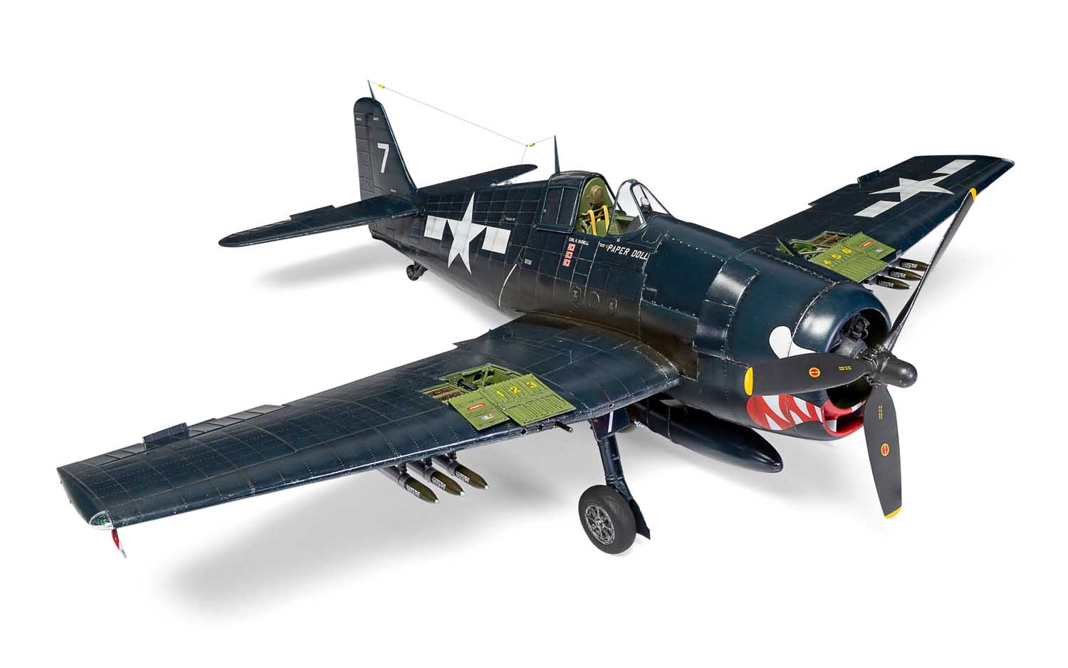 Grumman F6-F5 Hellcat - палубный истребитель времен Второй Мировой Войны. Комплект состоит из более чем 600 деталей, что позволяет собрать модель в одной из нескольких вариаций, как в полете, так и на хранении со сложенными крыльями.