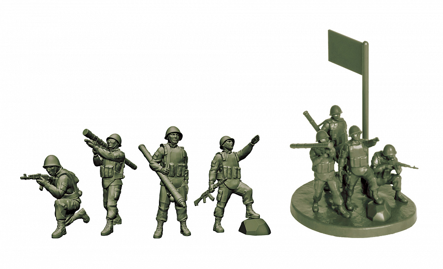 Набор деталей из пластмассы для сборки 4-х неокрашенных солдатиков.