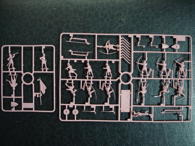 Набор состоит из 45 неокрашенных солдатиков: командир, знаменосец, музыкант, алебардист, пехотинец, лучник.
