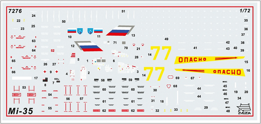 Вертолёт Ми-35М — дальнейшая модернизация широко известного боевого вертолёта Ми-24В, Ми-24ВП (модель этого вертолёта выпускает "Звезда", кат. 7293).